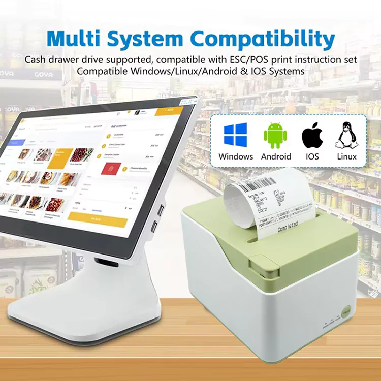 కార్యాచరణ సామర్థ్యం పరంగా, ఇది పేపర్-లోడింగ్ డిజైన్‌ను అవలంబిస్తుంది, కాగితాన్ని మార్చే ప్రక్రియను సులభతరం చేస్తుంది మరియు తక్కువ సమయంలో శీఘ్ర వినియోగం భర్తీని అనుమతిస్తుంది, సమయాన్ని ఆదా చేస్తుంది. దీని హై-స్పీడ్ ప్రింటింగ్ సామర్ధ్యం మరియు హై-ప్రెసిషన్ ఆటోమేటిక్ కట్టింగ్ నైఫ్ టికెట్ కట్‌ల సున్నితత్వాన్ని నిర్ధారిస్తుంది, చెక్అవుట్ వేగాన్ని వేగవంతం చేస్తుంది, క్యూయింగ్ సమయాన్ని తగ్గిస్తుంది మరియు స్టోర్ ఆపరేషన్ సామర్థ్యాన్ని మెరుగుపరుస్తుంది.