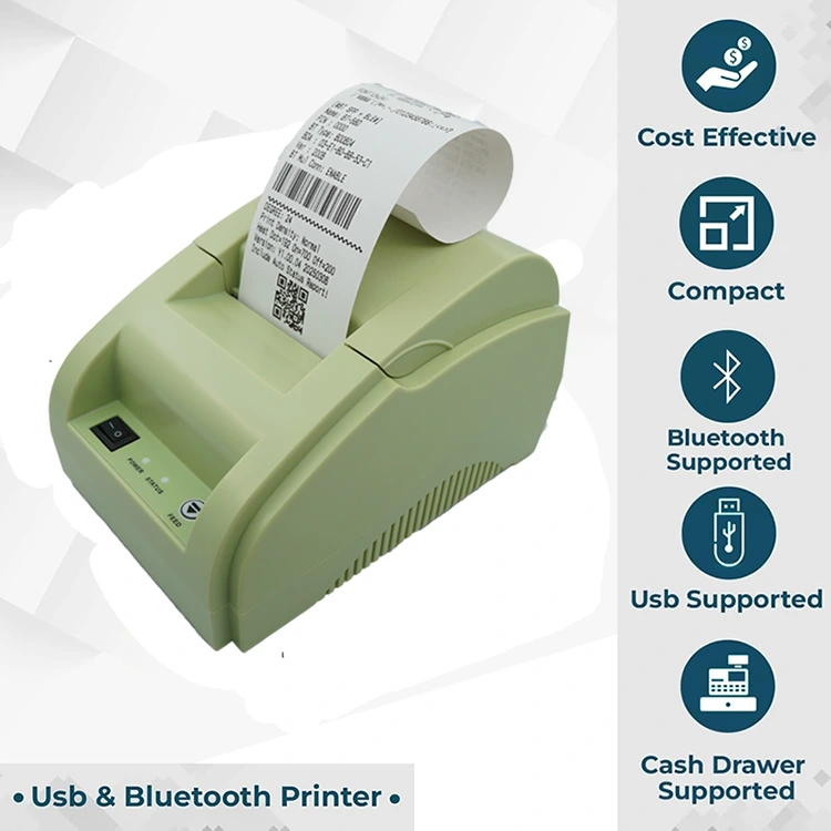 ఈ ఉత్పత్తి కాంపాక్ట్, చిన్న మరియు పోర్టబుల్ డిజైన్‌ను కలిగి ఉంది. ఇది USB మరియు బ్లూటూత్‌తో సహా వైర్‌లెస్ సామర్థ్యాలను కలిగి ఉంది, ఇది వైర్‌లెస్ ప్రింటింగ్ కోసం బ్లూటూత్ ద్వారా స్మార్ట్‌ఫోన్‌లు మరియు టాబ్లెట్‌ల వంటి వివిధ పరికరాలకు కనెక్ట్ చేయడానికి అనుమతిస్తుంది. రిటైల్ దుకాణాలు, రెస్టారెంట్లు, కొరియర్ సేవలు, టిక్కెట్ కార్యాలయాలు మరియు మొబైల్ విక్రయాల కోసం సిఫార్సు చేయబడింది, దీని పోర్టబిలిటీ మరియు వేగవంతమైన ప్రింటింగ్ వేగం నిరాశపరచవు.