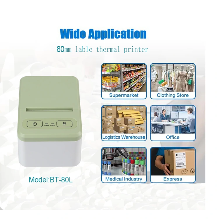 మా హై-స్పీడ్ లేబుల్ ప్రింటర్ ఉపయోగించడానికి చాలా సులభం. ఇది జత చేసిన వెంటనే ముద్రిస్తుంది మరియు జట్టు భాగస్వామ్యానికి మద్దతు ఇస్తుంది. ఇది ఆఫీస్ డాక్యుమెంట్ మేనేజ్‌మెంట్, వేర్‌హౌస్ ఇన్వెంటరీ లేబులింగ్, హోమ్ ఆర్గనైజేషన్, రిటైల్ ప్రైస్ ట్యాగ్ ప్రొడక్షన్, ఫుడ్ డెలివరీ ప్రింటింగ్, హాస్పిటల్ పేషెంట్ ఐడెంటిఫికేషన్ మరియు ఇతర ఫీల్డ్‌లలో విస్తృతంగా ఉపయోగించబడుతుంది.